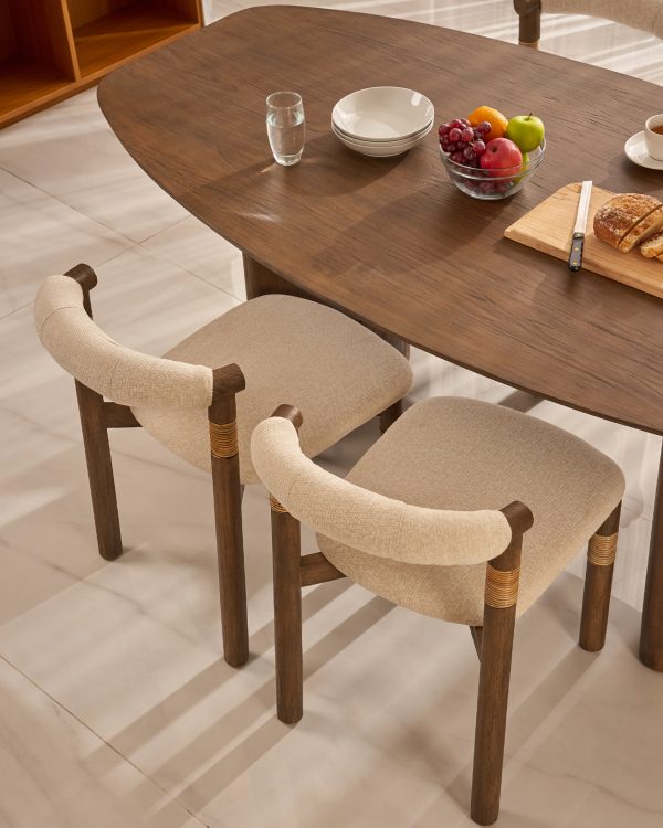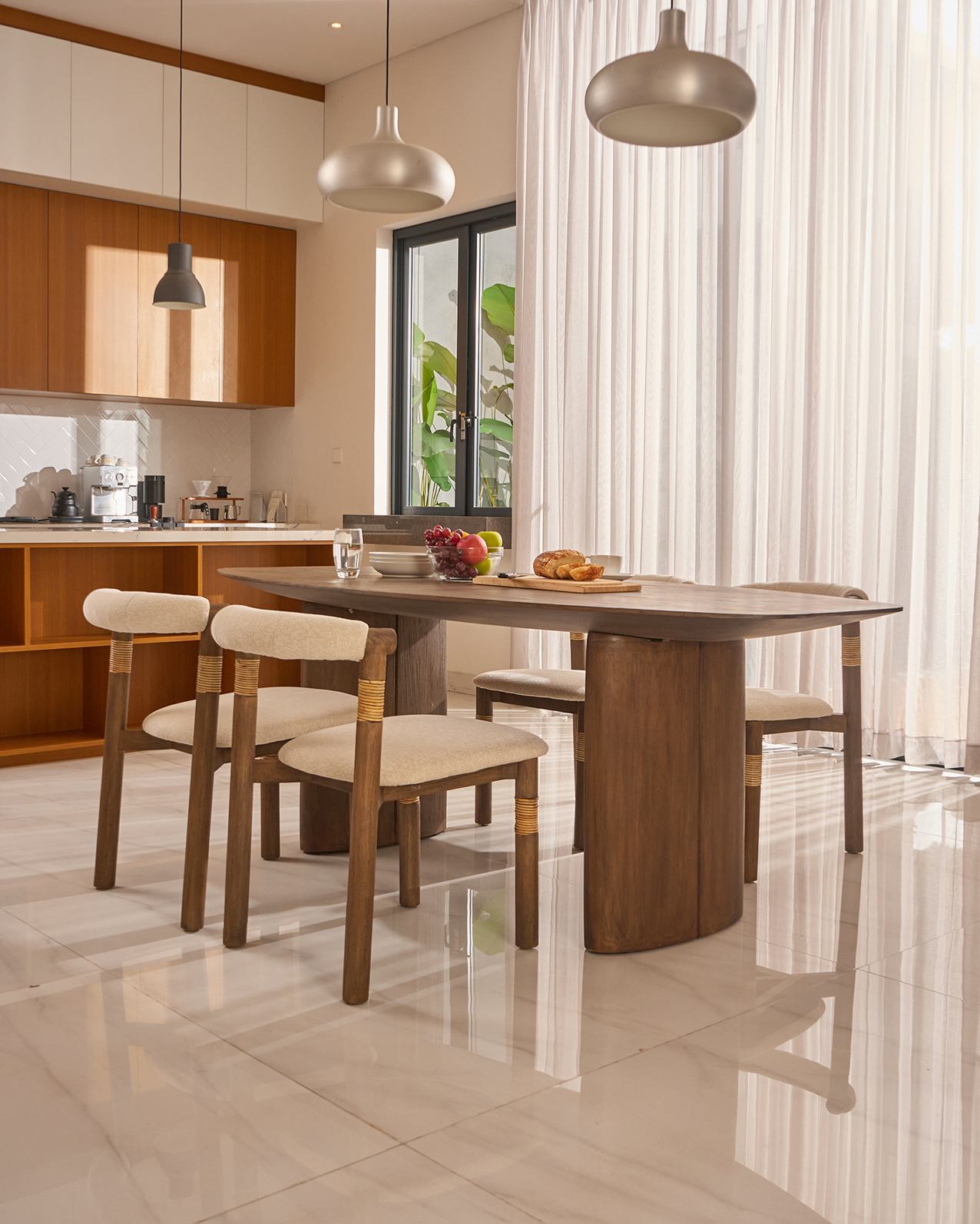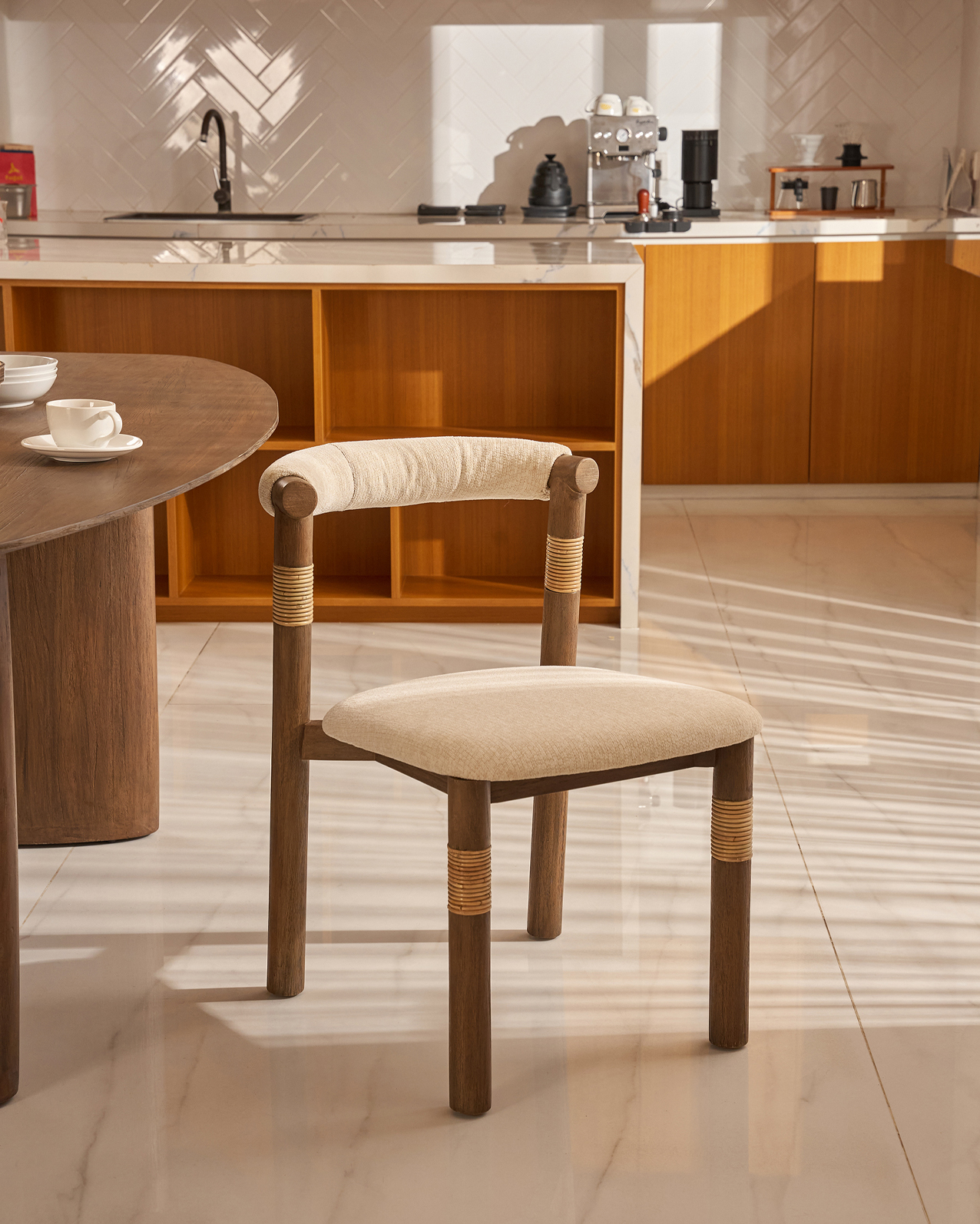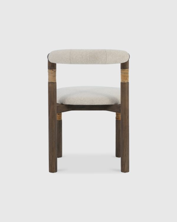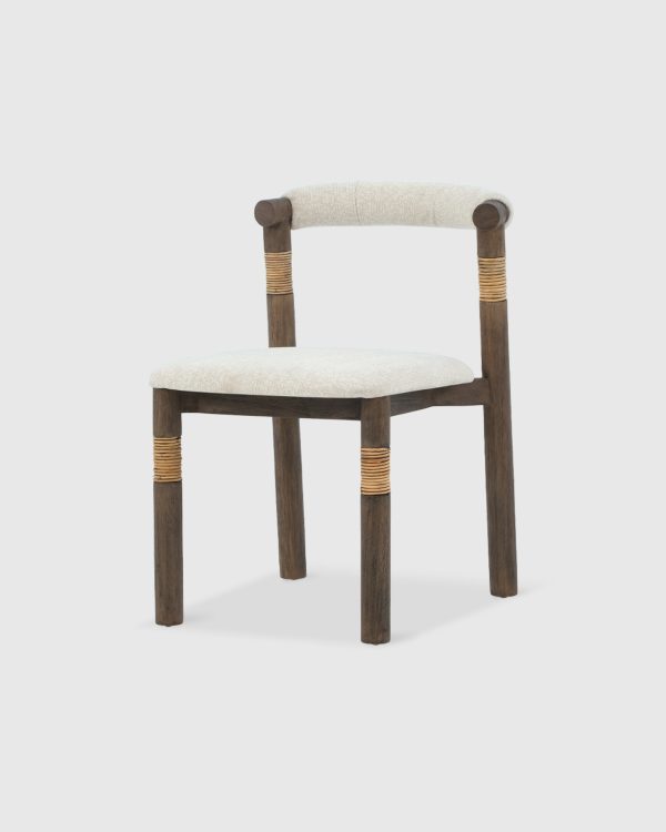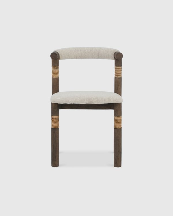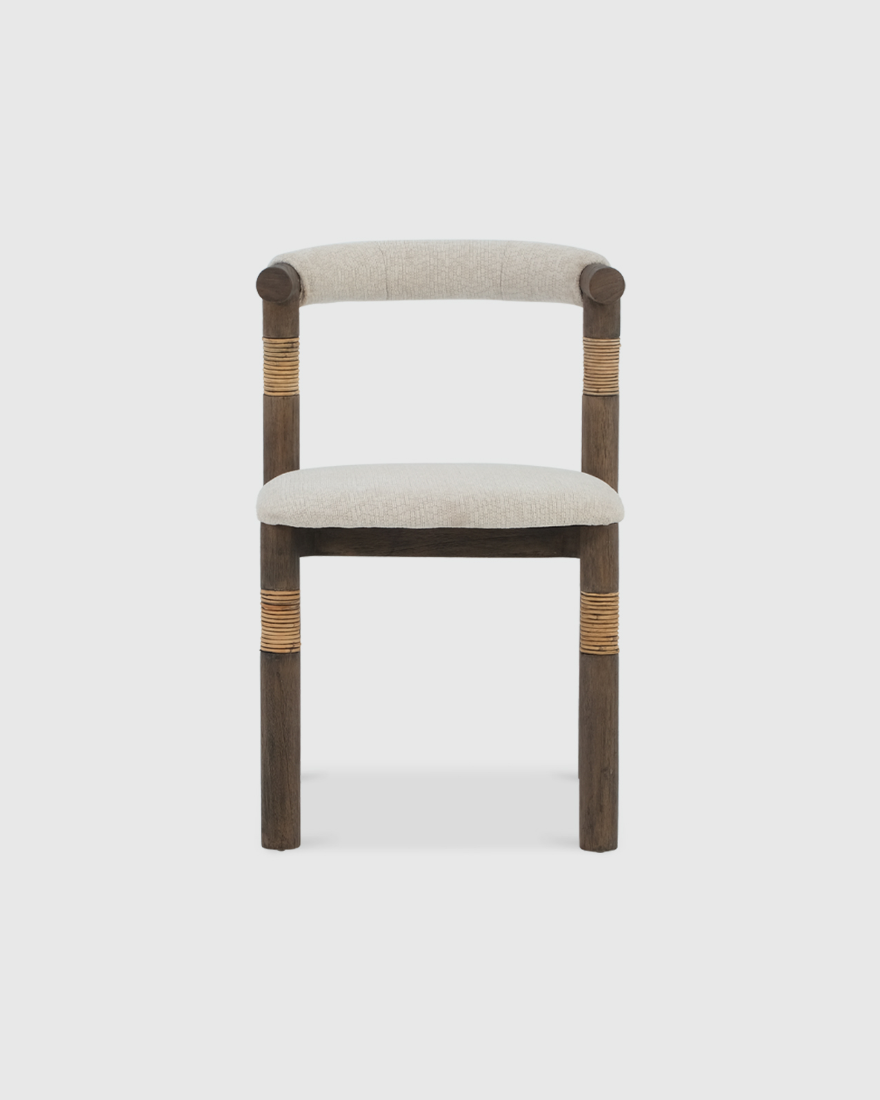 The BROMLEY chair features a signature rounded back and cushioning for an elevated dining experience. The woven accents on every leg present a perfect balance of artisanal style and character.