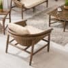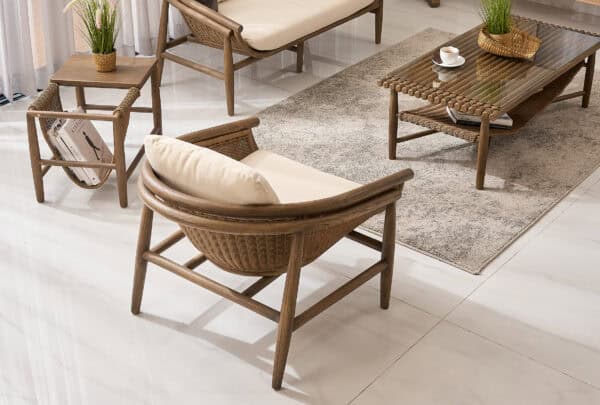 Inspired by the Javanese everyday tool “pengki”, WANAKA incorporates its shape into modern living. Built with a teak frame and premium synthetic weaving, the complete set, which includes coffee and end tables, offers a luxurious look with a traditional heritage.